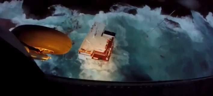 Βίντεο με την δραματική διάσωση των 9 μελών του πληρώματος που επέβαιναν στο φορτηγό πλοίο που προσάραξε...