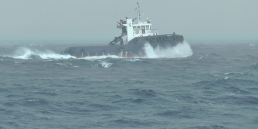 Ο δυνατός αέρας και τα μανιασμένα κύματα χτυπάνε το μικρό σκάφος
