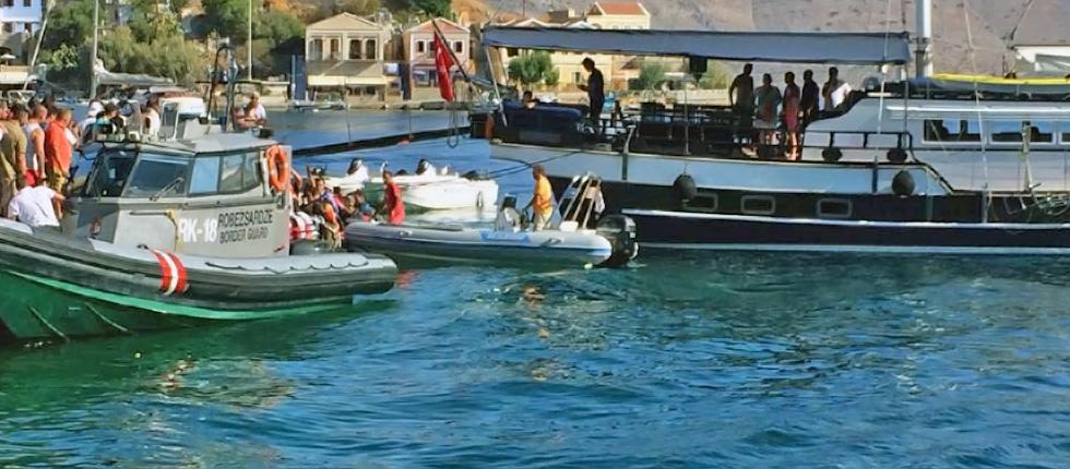 Μία από τις άστοχες βολές ακινητοποίησης, που επιχείρησε λιμενικός, για να σταματήσει την επίθεση του δουλέμπορου προς τον