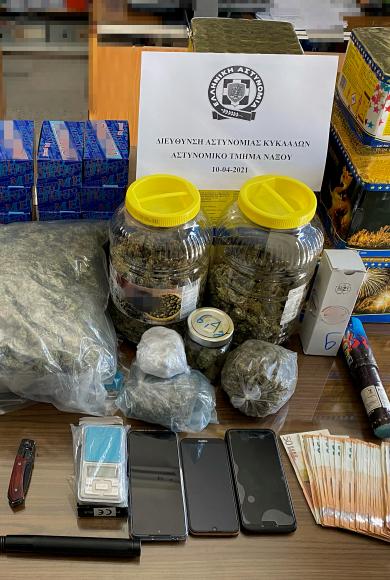 Μια σύλληψη από αστυνομικούς του Α. Τ. Νάξου για κατοχή ναρκωτικών, κροτίδων και όπλων