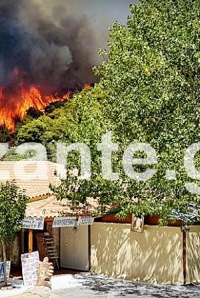 Φωτιά στη Ζάκυνθο: Καίγονται σπίτια και καταστήματα στην Αναφωνήτρια