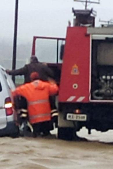 Κακοκαιρία: Πυροσβέστες απεγκλώβισαν οδηγό στα Φάρσαλα - ΦΩΤΟ
