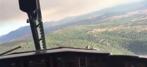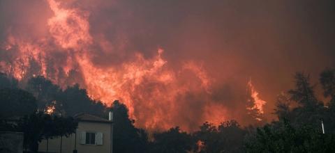 Ισχυρές επίγειες δυνάμεις της πυροσβεστικής επιχειρούν στο μέτωπο της πυρκαγιάς κοντά στο χωριό Πλατάνα στην Εύβοια...