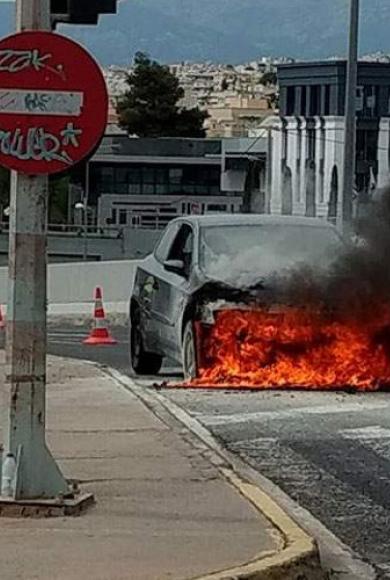 Στις φλόγες αυτοκίνητο στο «δαχτυλίδι» στην Κηφισίας στο Μαρούσι