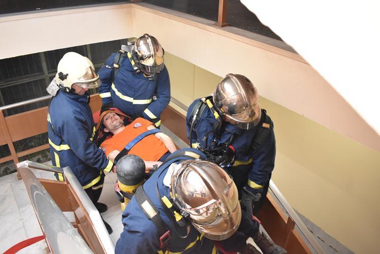 Εκδήλωση πυρκαγιάς στον τρίτο όροφο του Δικαστικού Μεγάρου της Λάρισας ήταν το σενάριο άσκησης...