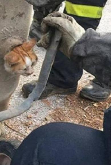 Πυροσβέστες απεγκλώβισαν γάτα από κάδο σκουπιδιών - ΦΩΤΟΓΡΑΦΙΕΣ