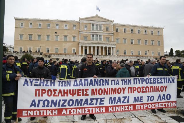 Οι πυροσβέστες επέστρεψαν σήμερα στο υπουργείο Διοικητικής Μεταρρύθμισης, πραγματοποιώντας διαμαρτυρία.