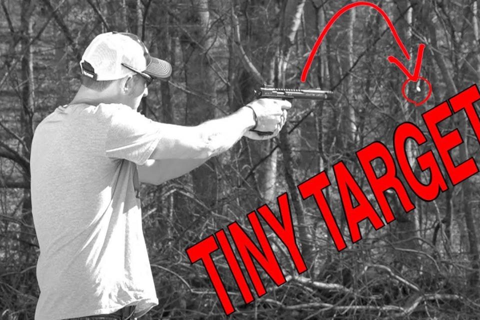 O 22Plinkster ασχολείται με μικροσκοπικούς στόχους, βάζοντας στον στόχο του Volquartsen Scorpion καραμέλες, κέρματα