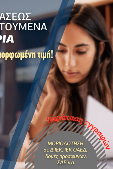 Δευτέρα, 25 Οκτωβρίου, 2021Εξ αποστάσεως μοριοδοτούμενα σεμινάρια για προσλήψεις σε: ΣΔΕ, ΔΙΕΚ, ΙΕΚ ΟΑΕΔ κτλ