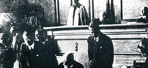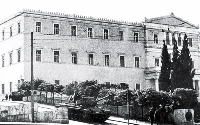 Κυριακή, 24 Ιουλίου, 2016 1974: Πνιγμένη στο αίμα του εγκλήματος στην Κύπρο, η χούντα της Αθήνας καταρρέει. Σε σύσκεψη με τη συμμετοχή και πολιτικών