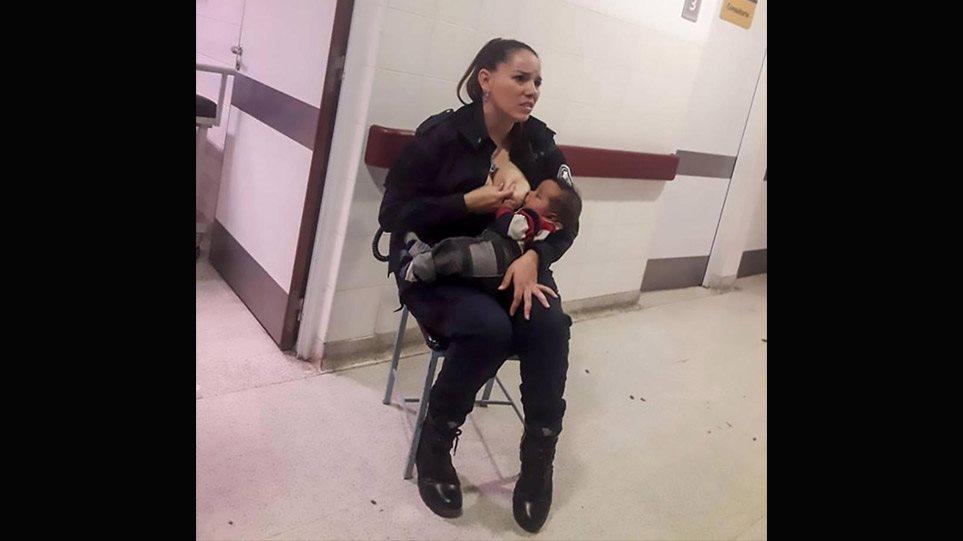 Το γύρο του διαδικτύου κάνει μια φωτογραφία με μια γυναίκα αστυνομικό στην Αργεντινή, η οποία θηλάζει σε διάδρομο νοσοκομείο