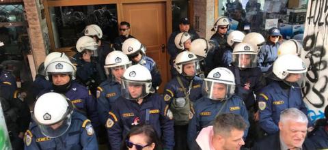 Ελλάδα Έντονη αστυνομική δύναμη έξω από συμβολαιογραφείο στα Εξάρχεια - Διαμαρτυρία για τους πλειστηριασμούς