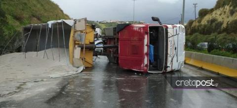 ΦΩΤΟΓΡΑΦΙΕΣ: Σοβαρό τροχαίο έπειτα από ανατροπή νταλίκας