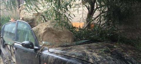 Ελλάδα Είχε τύχη βουνό -Βράχοι καταπλάκωσαν το αυτοκίνητο Ροδίτη οδηγού, μόλις εκείνος βγήκε από το όχημα [εικόνες]