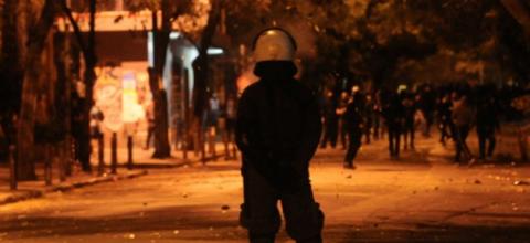 Νεαροί επιτέθηκαν σε αστυνομική διμοιρία στην Πλατεία Κάνιγγος.