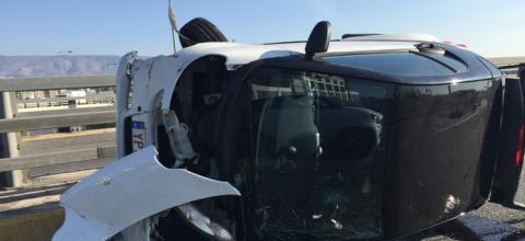 Φωτογραφίες από τουμπαρισμένο αυτοκίνητο στον κόμβο Φαλήρου