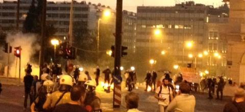 Ελλάδα Κουκουλοφόροι εκτοξεύουν βόμβες μολότοφ, ξύλα, πέτρες και καπνογόνα εναντίον των αστυνομικών.(φωτο)