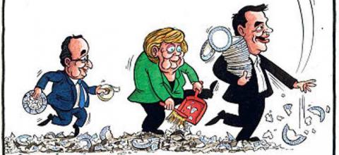 Ο Τσίπρας... σπάει πιάτα, η Μέρκελ τα μαζεύει, ο Ολάντ τα κολλάει