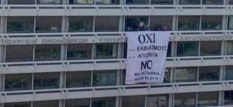 Ελλάδα ΜΟΝΟ ΣΤΗΝ ΕΛΛΑΔΑ ΓΙΝΟΝΤΑΙ ΑΥΤΑ - Το υπουργείο Οικονομικών ανάρτησε πανό με το «Οχι» το οποίο καταλαμβάνει δύο ορόφους