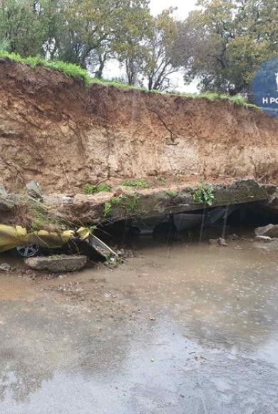 Τεράστιος τοίχος κατέρρευσε και συνέθλιψε δύο αυτοκίνητα - ΦΩΤΟΓΡΑΦΙΕΣ