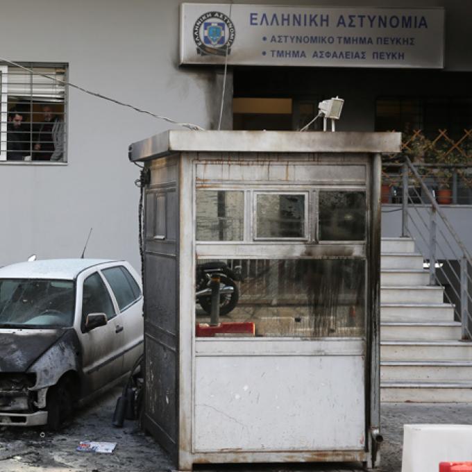 Καταδρομική επίθεση στο Aστυνομικό Tμήμα της Πεύκης – Κάηκαν οχήματα
