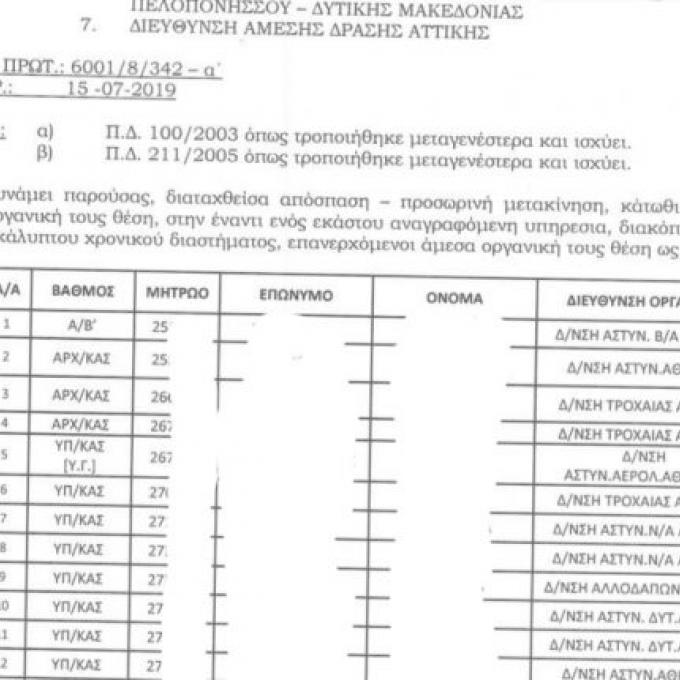 Αστυνομία Το σήμα που «κόβει» ακόμα 51 αποσπασμένους – Από που φεύγουν, που πάνε Τετάρτη, 17 Ιουλίου, 2019