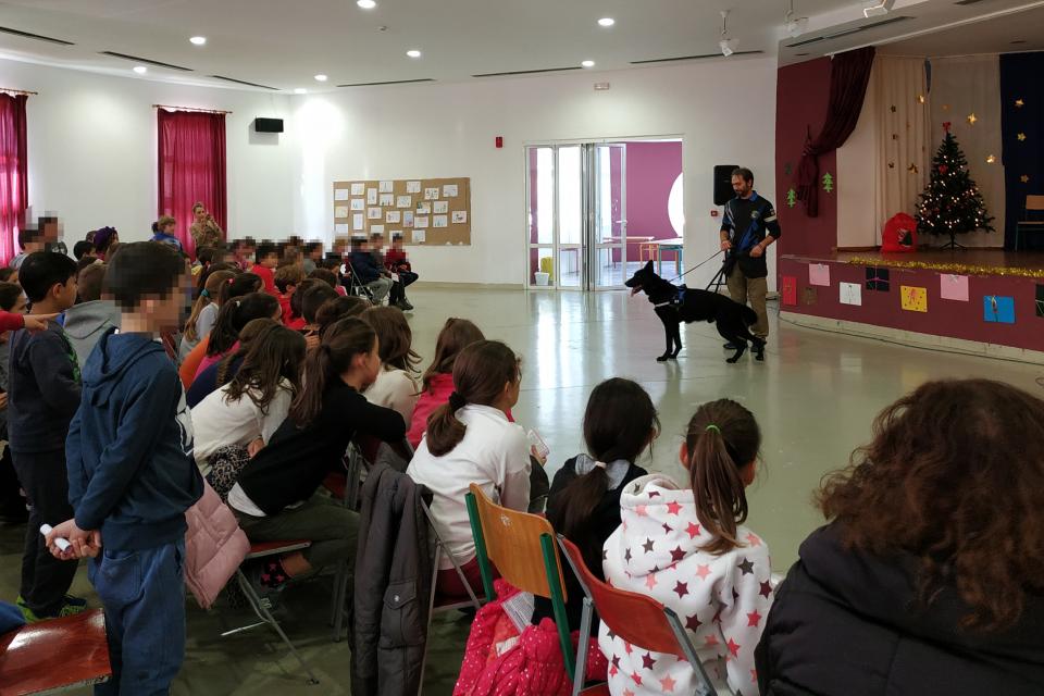 Κυριακή, 30 Δεκεμβρίου, 2018 Οι μικροί μαθητές είχαν την ευκαιρία να γνωρίσουν πως ένας εκπαιδευμένος σκύλος ζει ως αναπόσπαστο μέλος της οικογένειας