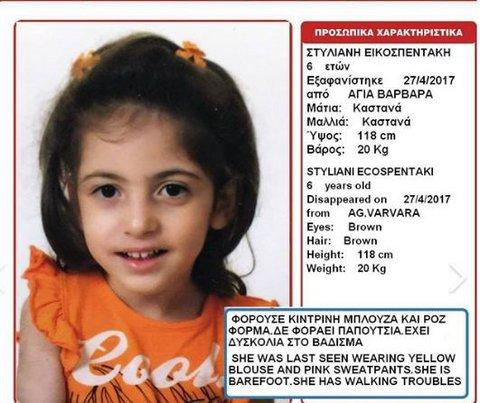 Την εξαφάνιση της 6χρονης κόρης του, δήλωσε το πρωί της Πέμπτης, στο Αστυνομικό Τμήμα Αγίας Βαρβάρας, ο πατέρας της μικρής.