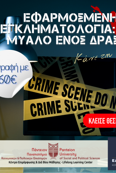 Εφαρμοσμένη Εγκληματολογία: Στο μυαλό ενός δράστη - Πρόγραμμα από το Πάντειο Πανεπιστήμιο Κ.Ε.ΔΙ.ΒΙ.Μ.