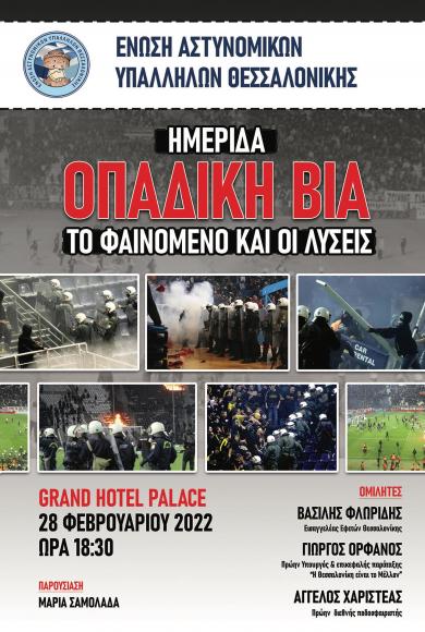 Αστυνομία Ημερίδα ΕΑΥΘ για την οπαδική βία τη Δευτέρα 28 Φεβρουαρίου 2022 Παρασκευή, 18 Φεβρουαρίου, 2022