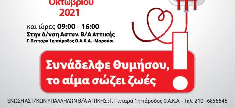 14η Εθελοντική Αιμοδοσία της Ένωσης Αστυνομικών Υπαλλήλων Β/Α Αττικής