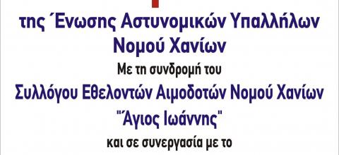 Παρασκευή, 23 Απριλίου, 2021Εθελοντική αιμοδοσία στο Αστυνομικό Μέγαρο Χανίων