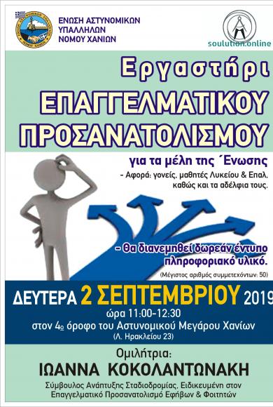 Διοργάνωση δωρεάν εργαστηρίου επαγγελματικού προσανατολισμού από την ένωση Χανίων