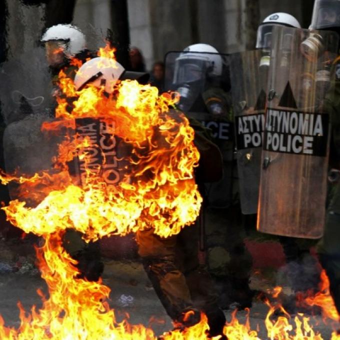 Συγκλονιστική φωτογραφία Αστυνομικού που τραυματίστηκε από τις επιθέσεις αντιεξουσιαστών