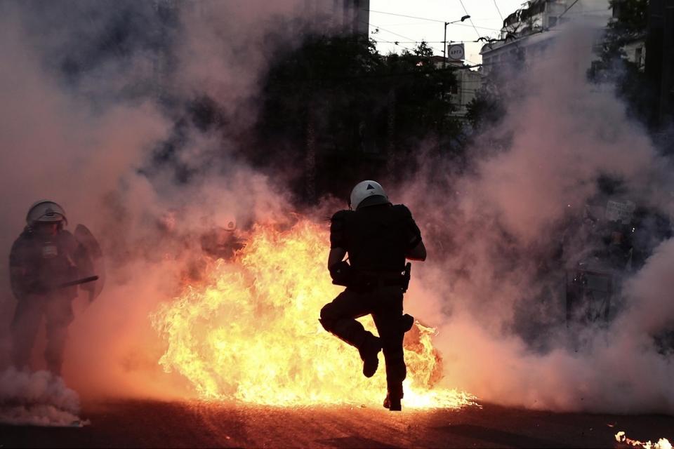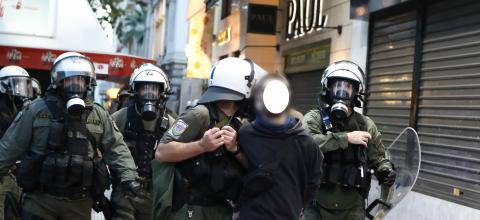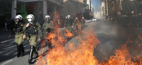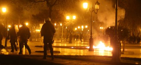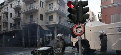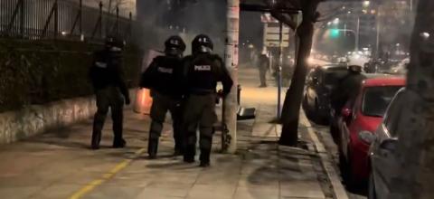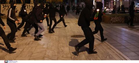 Σύγκρουση μεταξύ κουκουλοφόρων και ΜΑΤ έγινε λίγο μετά τις 12 η ώρα τα ξημερώματα της Κυριακής. Επίθεση με βόμβες μολότοφ
