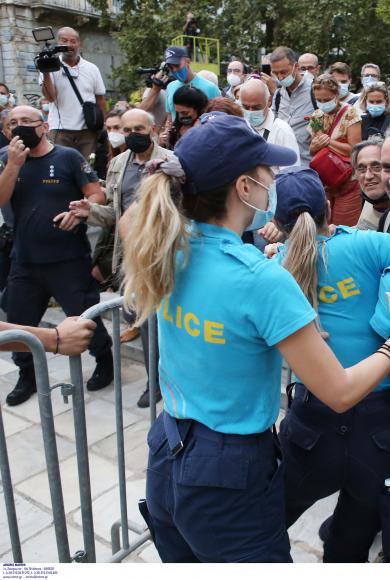 Αστυνομία Φωτογραφίες: Ένταση ανάμεσα στις αστυνομικές δυνάμεις και πολίτες έξω από το παρεκκλήσι όπου βρίσκεται η σορός του Μίκη Θεοδωράκη Τρίτη, 7 Σεπτεμβρίου, 2021