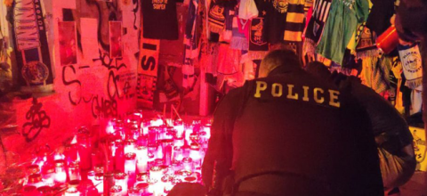 Αστυνομία Φωτο & ΒΙΝΤΕΟ: Αστυνομικοί της ομάδας ΔΙΑΣ αφήνουν λουλούδια στο σημείο που δολοφονήθηκε ο Άλκης