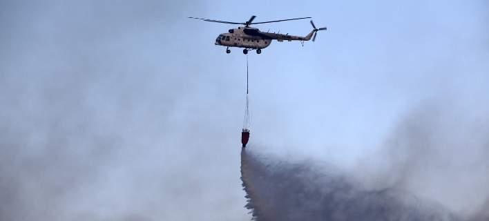 Με επίγεια και εναέρια μέσα οι πυροσβέστες δίνουν τη μάχη με τις φλόγες...