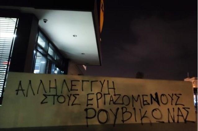 Έφοδοι του Ρουβίκωνα σε επτά καταστήματα μεγάλης αλυσίδας σουπερμάρκετ - ΦΩΤΟΓΡΑΦΙΕΣ Επίθεση με μπογιές σε επτά καταστήματα