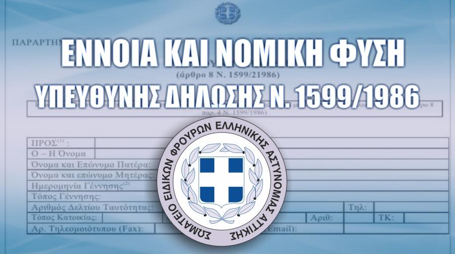 Αστυνομία Εννοια και Νομική φύση Υπεύθυνης Δήλωσης Ν. 1599/1986 Ο Προϊστάμενος Κλάδου Διαχειριστικής - Τεχνικής Υποστήριξης και Πληροφορικής ...