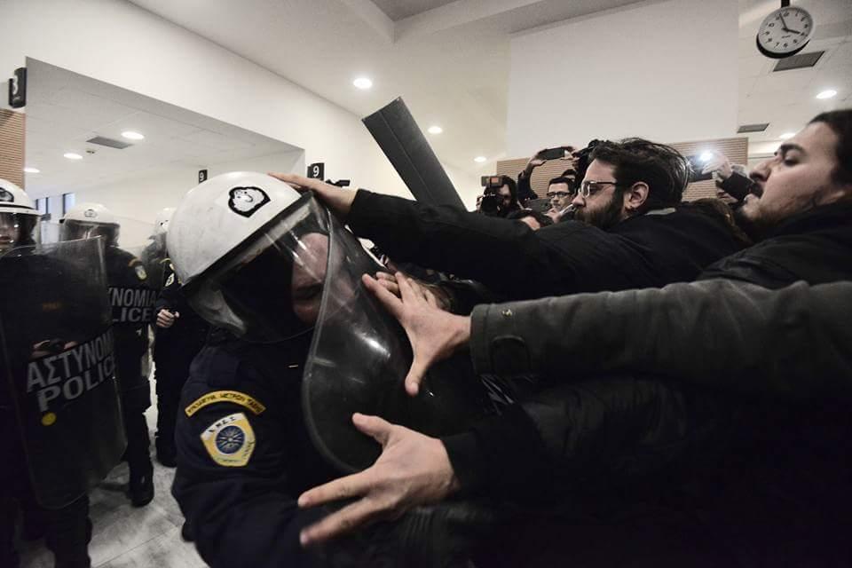 Αστυνομία Ένταση μεταξύ ΜΑΤ και διαδηλωτών έξω από συμβολαιογραφείο στο κέντρο της Θεσσαλονίκης (ΦΩΤΟ & ΒΙΝΤΕΟ)