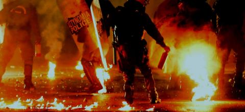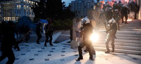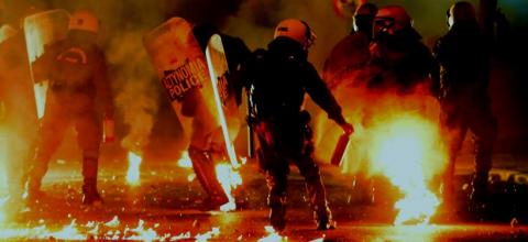 Δευτέρα, 5 Ιουνίου, 2017 Σε πεδίο μάχης μετατράπηκε για ένα ακόμη βράδυ η περιοχή των Εξαρχείων,