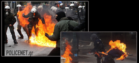 Συγκλονιστική φωτογραφία Αστυνομικού που τραυματίστηκε από τις επιθέσεις αντιεξουσιαστών