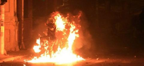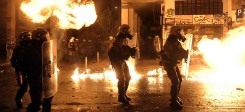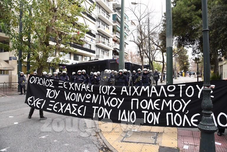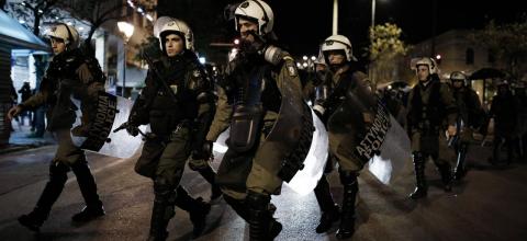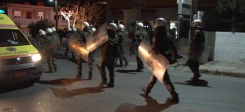Τετάρτη, 25 Ιανουαρίου, 2017 Η στάθμευση διμοιρίας των ΜΑΤ κατά τις βραδινές ώρες στη συμβολή