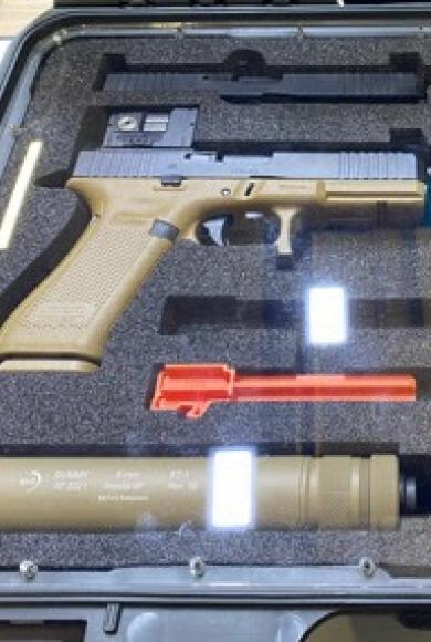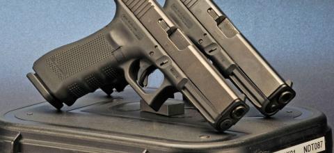 Ένα τρίο Glocks που δημιουργήθηκαν για μια εμπορική έκθεση της βιομηχανίας πυροβόλων όπλων πριν από δύο δεκαετίες οδεύει προς