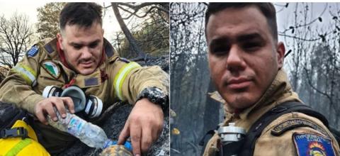 Πυροσβεστική Άκης Μπαρδάκης: Συγκινεί και την Ευρώπη ο πυροσβέστης που έδωσε νερό στη χελώνα - Τον έκανε θέμα η FAZ