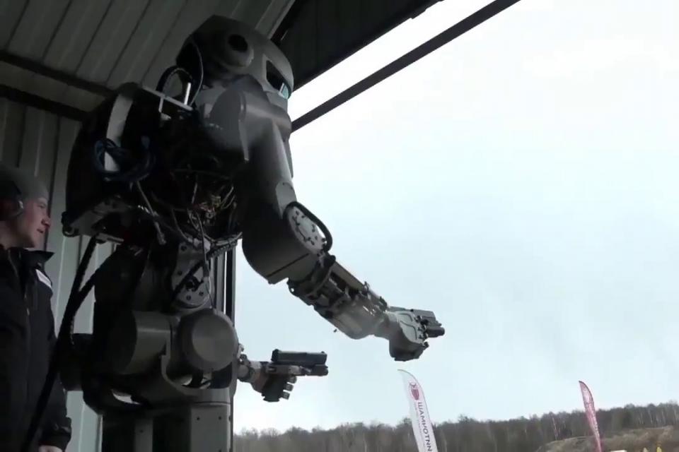Δείτε στο βίντεο, το πρωτότυπο ρωσικό ρομπότ F.E.D.O.R σε ρόλο «Εξολοθρευτή» να βάλλει με δύο πιστόλια και να πετυχαίνει τους