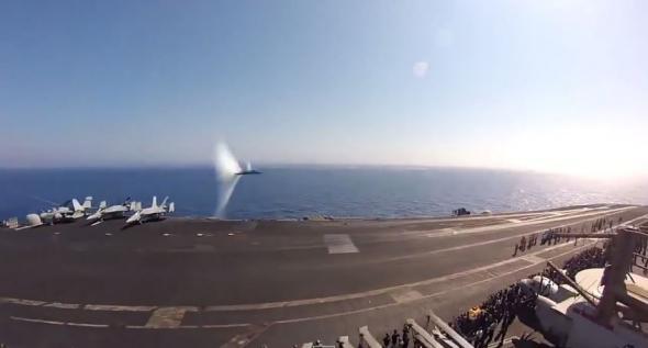 Πέμπτη, 8 Ιανουαρίου, 2015 Το προσωπικό ενός αεροπλανοφόρου είχαν την ευκαιρία να δουν και να καταγράψουν με τις κάμερές τους, το πέρασμα ενός μαχητικού